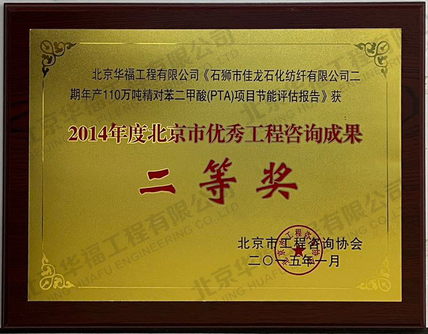 佳龙石化项目优秀工程咨询成果二等奖